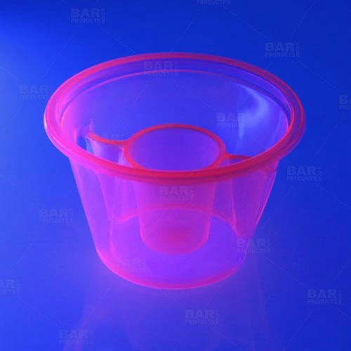 These plastic Bomb SHOTZ® are the smart way to serve up specialty shots- the bright neon colors display well when serving and are easily disposable. The inner shot chamber holds a 7/8oz pour and the two outer chambers combined hold 2 1/4oz of liquor or mixers. They have ridged sides for easy handling. Sold in packs of 50 with four color options available.