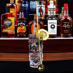 These fancy stirring spoons are perfect for mixing up some delicious cocktails. Each spoon is made of durable gold colored metal. Whether displayed in the kitchen or portrayed while making cocktails, these are spoons your friends and family won’t be able to forget. This set comes with 4 stir spoons that measures 13.75″ in length. This product is dishwasher safe