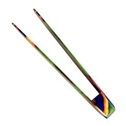 Bamboo Rainbow Tiki 6 piece bar set. The bright rainbow colors are food grade colorant and will not bleed or fade with washing. Set comes with a double sided jigger that measures 1.5 ounce by 1 ounce for precise liquid measurements. Muddler is 9.5” and ideal for extracting the maximum flavor from your ingredients. The tongs are 9” and great for getting hard to reach items out of jars. Citrus reamer measures 6.5” and easy to use to incorporate fresh juices and herbs into your cocktails. Cutting board is sized for easy storage measuring 9” x 7”. Bamboo and stainless steel head bottle opener measures 8.5”.