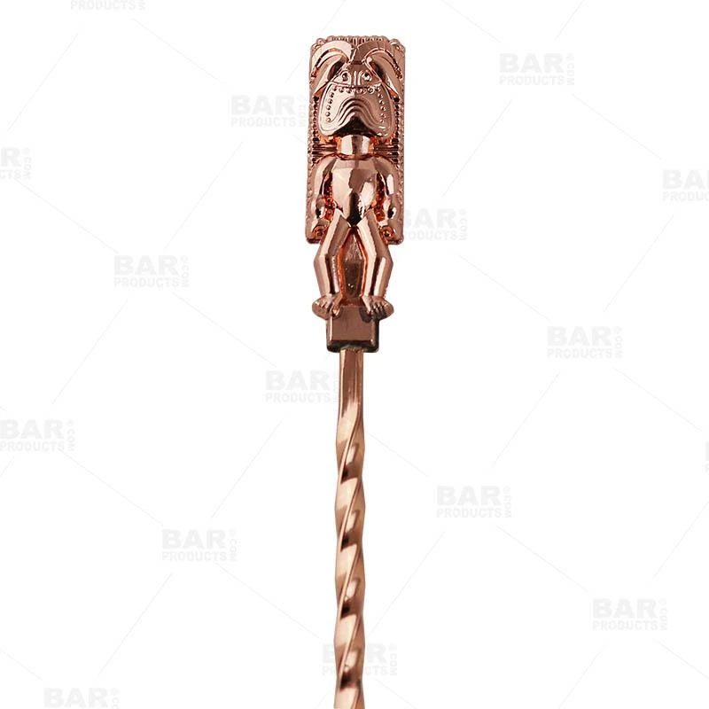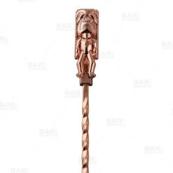 With this Tiki Butt Ku themed bar spoon, not only do you get to utilize a professionally designed bar spoon, but also give your bar service a fun tropical vibe. The high quality copper plated stainless steel material along with the detailed lines of the weighted tip tiki man and twisted stem takes this bar spoon from ordinary to extraordinary! Not Dishwasher Safe.