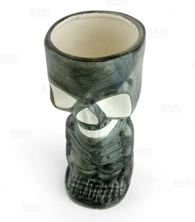 Another amazingly unique piece from our BarConic® Tiki Drinkware line! This hand crafted ceramic skeleton themed tiki mug is a fun and unique way to serve up your latest libations. This tiki mug features a glossy glaze finish and a definitive skeleton mold.