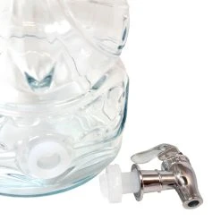Tiki beverage dispenser holds 1.6 gallons and made with a thick, high-quality glass material. The intricate design of a tiki face blown into the glass offers smooth lines and promotes a very professional, elegant piece of glassware. Perfect for serving ice tea, lemonade, water and any other type of punch or cocktail mixture. The tap is easily maneuvered, allowing the liquid to flow smooth and splatter free with a flip of the handle. The metal lid screws on tightly into place, protecting your beverage from unwanted particles and maintaining sanitation. When you receive your product, please read the instructions on how to appropriately tighten the dispenser seal, ensuring you get the most out of your first use. Measures 12 1/2″ H x 6 1/2″ W with 4″ Rim.