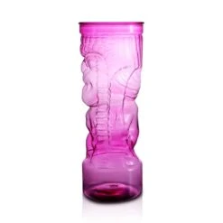 Think of all the fun, fruity and tropical concoctions you can mix up in this pink tiki man themed plastic cup! You and your guests are sure to appreciate the high quality plastic of this fun novelty cup. It is definitely built to last through many uses and can be hand washed. The black lid snaps securely into place to avoid spillage while the 12″ length clear plastic straw will ensure that your guests enjoy the entire 24 ounces of their delicious beverage. The tiki mixology trend is showing no signs of slowing down and we feel it is here to stay. Stock up on these great reusable tiki cups and enjoy one of the best movements in modern mixology.
