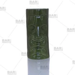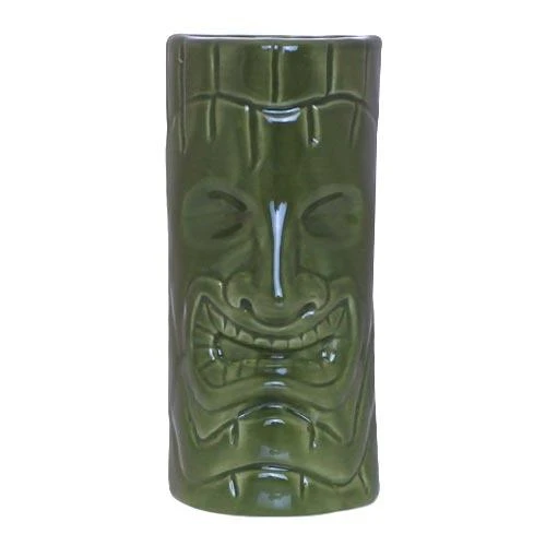 Our BarConicĀ® Tiki Drinkware Face Tiki Mug has the resemblance of a mid-century craftsmanās touch, sculpted to create the vintage look of a Polynesian God in a dark olive green glaze finish. This mug is completely smooth and has rounded edges making it safe for anyone to use. Get back to the islands with this finely crafted tiki mug and enjoy your favorite exotic libations while hosting your next outdoor, pool or tropical themed party or other event. Create your own tropical paradise while sipping a little bit of paradise from this āFaceā man tiki mug. Best for serving frozen or any beverages, this finely crafted piece of ceramic drinkware is a guaranteed standout. See our many other selections of tiki drinkware mugs from the extensive BarconicĀ® Tiki Drinkware collection and have yourself a blast.