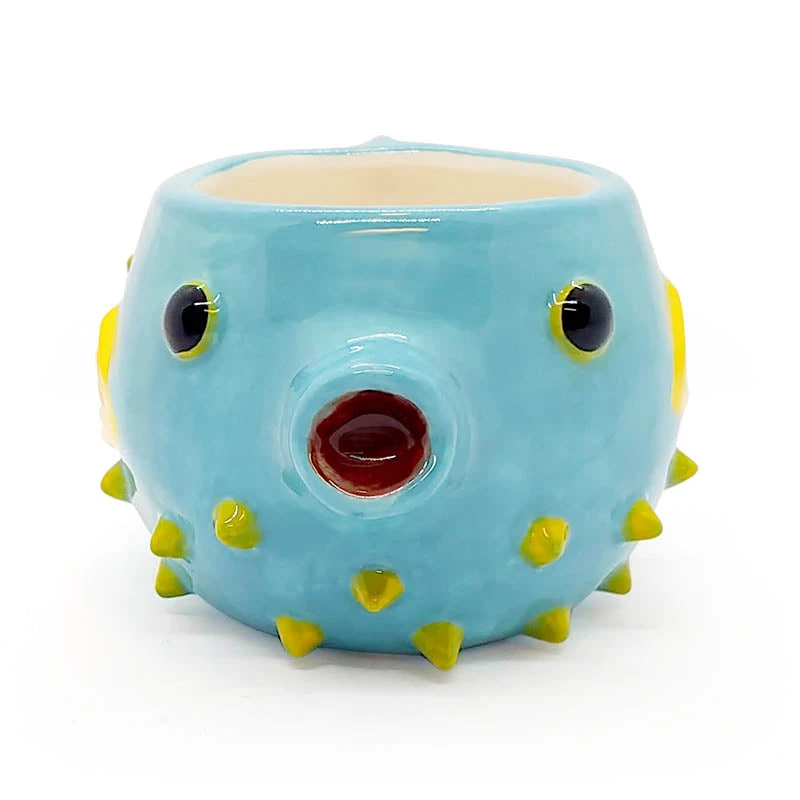 BarConicĀ® ceramic tiki puffer fish mug. First stage of puffer fish poisoning is a prickling sensation in your lips and tongue. Serve up some cocktails to family and friends that they’ll remember. Our bright puffer fish tiki is made of high quality durable ceramic. Hand painted and glazed with fine detail. Measures 4 1/2″ W x 3″ H x 2 3/4″