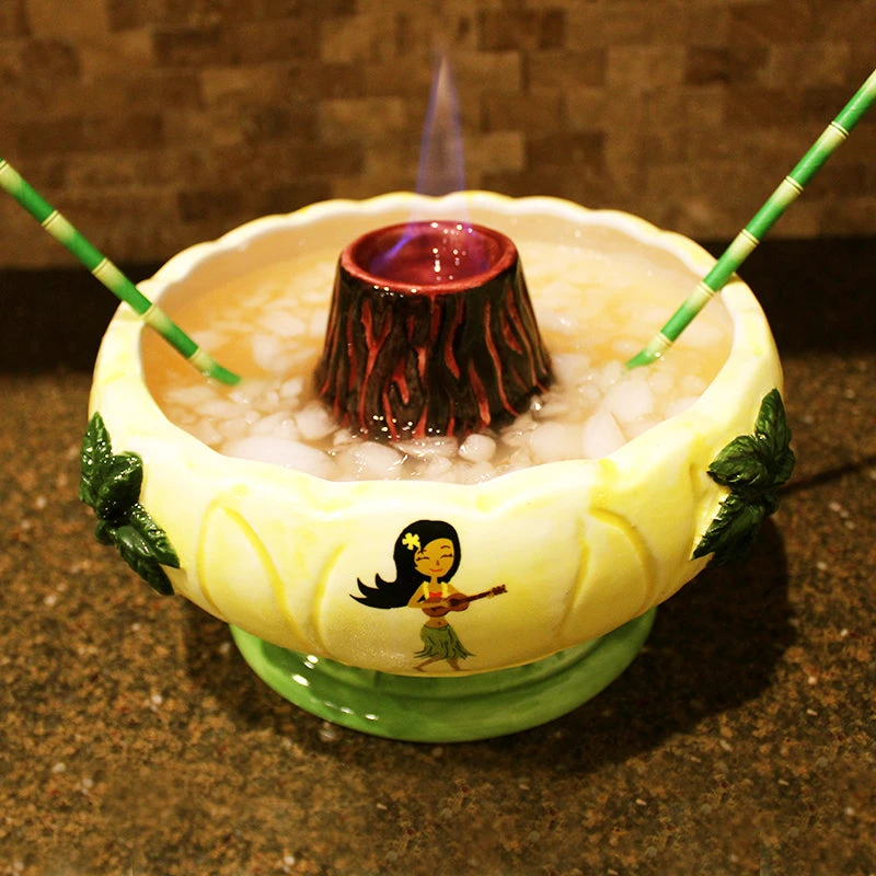 BarConic® high-quality ceramic volcano bowl, it holds 48 oz. Designed to hold a large amount of your favorite cocktails…For a group to sip from. Add a bit of pure grain liquor in the center cup, light it up so that it flames as it arrives to the table for that tropical island experience. This product is hand painted. Colors and brushwork will vary. Hand wash only.