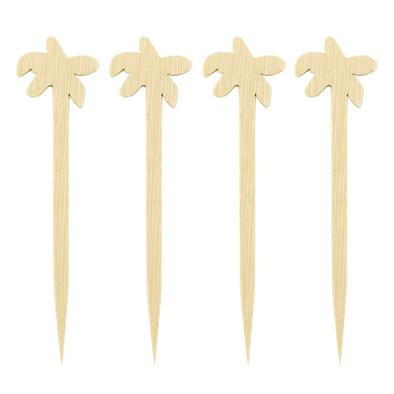 Garnish your tropical drink with these wooden palm tree cocktail picks. These are perfect for skeweringĀ various types ofĀ fruits or berries to give your drink an extra taste of fruity goodness with every sip. Each pick is made of sturdy bamboo wood and has a palm tree carved on top of the pick.Ā