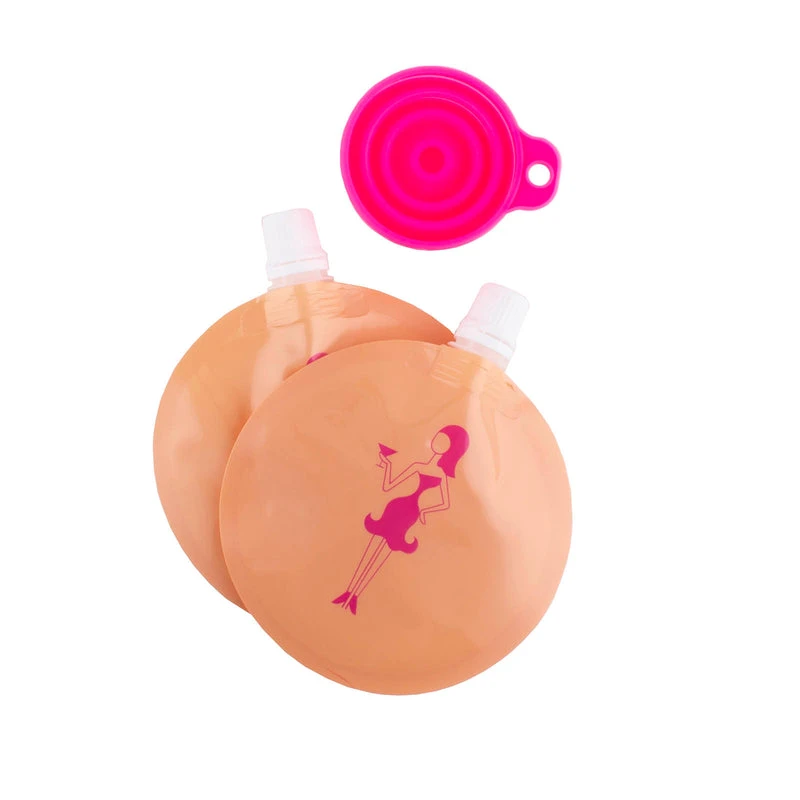 Sneaking in some booze at that big music festival has never been easier! Simply fill the bags using the silicone collapsible funnel that is provided and stuff them in your bra. Using these booze implants is super easy and a great novelty/gag gift for your friends. For the best results, it’s best to aim the caps toward the center of your bra. Each pack has a diameter of 4.6″ and is made of durable flexible plastic.