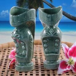 This big Mouthed ceramic Tiki Mug is sure to make a big impact at your next tropical bash. It is artistically molded with an offset style that makes drinking out of this mug not only a pleasure, but an event. The design also offers the user a superb grip on the mug. Try out any frothy concoction and see your guests happy reactions to the fun element of drinking out of the “Mouth” Tiki Mug. Holds 20 ounces and stands 9″ tall.