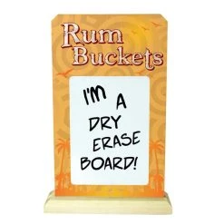 Don’t forget to get Dry Erase Wooden Signs to advertise your buckets. You can write prices and other specials on the front of the board and let guests see the recipes on the back of the board. They are great for tables and bar top advertising.