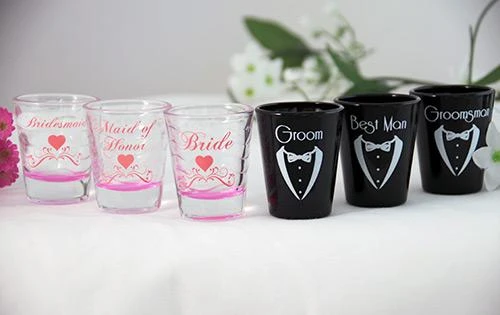 Your wedding day is set and the guest list is planned out; now it’s time to find some glasses to toast the grand occasion! Our Wedding Shot Glasses are the perfect addition to your wedding reception, and can even help eliminate those pre-wedding jitters. Hurry and get your Wedding Shot Glasses ordered, so you and your wedding party can toast to a successful future for you and yours!