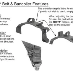 - Bandoliers & Waist Belt are adjustable- One size fits most