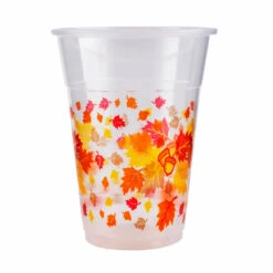 Get prepped for your fall themed parties or thanksgiving with these autumn themed cups. They are disposable proving easy clean up after the party. These cups come packaged with 20 cups and hold 16 ounces of liquid. They are made of clear plastic and have bright and vibrant print of fall colored leaves ranging from yellow to dark orange.