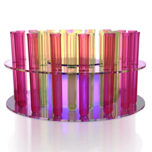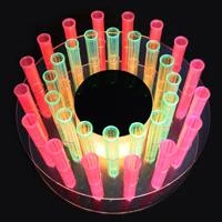 Our new remote controlled LED shooter tray is a great way to transport all of your test tube shots around the bar. Made from long lasting, durable, high quality plastic, this circular light up shot tray is the perfect option for storing and serving any pre-made test tube shooters. With enough space to comfortably fit up to 32 test tubes, this light weight serving tray allows your servers to stay on the floor longer without having to frequently restock. With this unique shooter rack youโll be well prepared for those busy nights around the bar. This simple and attractive serving tray is a great way to attract customers and make them want to buy shots. Let your servers and shot girls walk around in style with this fun and vibrant LED shooter tray. The multi channel remote allows you to create your own unique light show with just about any color and sequence. This 32 hole LED shooter tray is a must-have for any bar or restaurant.
