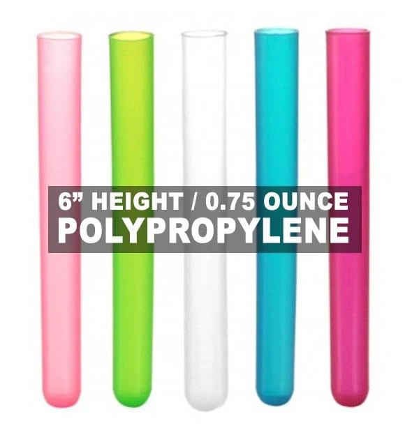 Increase the sales and the fun with these “Unbreakable” plastic test tube shooters! Simple prepare your shooter mixes ahead of time, chill when necessary, and send these fun products out with your Shooter Girl or server. Sell them at the bar for souvenirs, or bring these to your next party. Make your job easier and be sure to pick up a plastic or foam tube tray and caps! Note: Our test tube shot glass caps only fit this style of tube. These are available in an array of colors, clear, and assorted (every fifth product changes color in this option).
